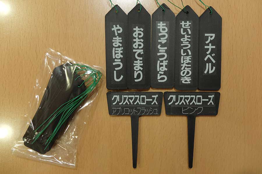 札によって色や大きさ、デザインが不統一で、しかも店頭で主張する役割なので植物より目立ってしまい、国道沿いの景色のようにみっともないことになっていた。植物の名称は把握しておきたいし、何とかならないものかとずっと思っていた。