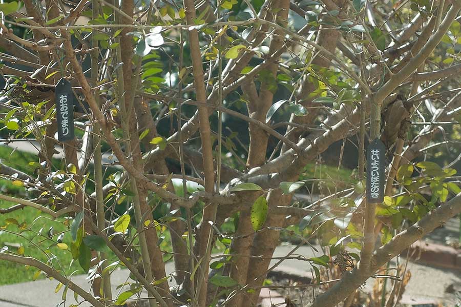 写研書体で印字したテプラを黒い園芸ラベルに貼る。今回は樹木用に縦型を用意し、書体は「ゴナB」にした。こうして写研書体を写植機以外から出力することを日常のことのように書くのは、今でも不思議な気がする。