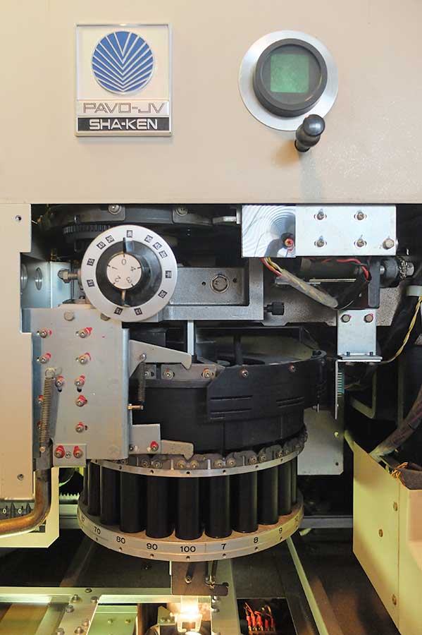 上の写真では下から主レンズ(Q数)、JQレンズ(補助拡大)、そしてダイヤルの上に変形レンズ(平体・長体・斜体)のターレットが見える。