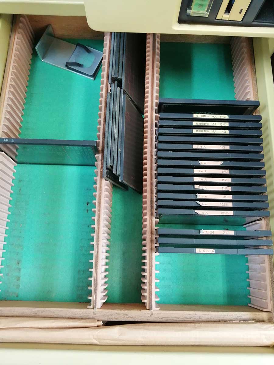 このまま埋もれさせていても勿体無い。個人でも法人でも写植機を愛用している方はまだいるかもしれない。当社の歴史の一翼を担い、今となっては貴重な機械だから、廃棄するよりもそんな方に部品どりでも使用していただいたほうが機械としても喜ぶのではないか。というところから、有償でとはなりますが、お譲りできる方を探そうという話に至りました。
