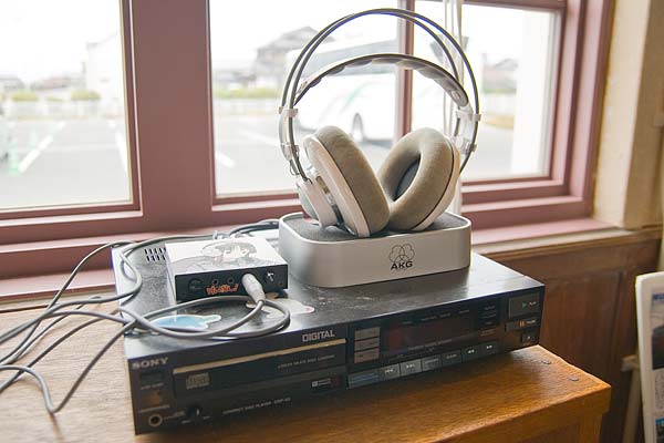 このヘッドフォンの高い能力を引き出す為、澪ちゃんの絵が貼られたヘッドフォンアンプに接続され、単体のCDプレイヤーで再生できるようになっています。SONY の「CDP-33」(1985年)とはまた渋い。