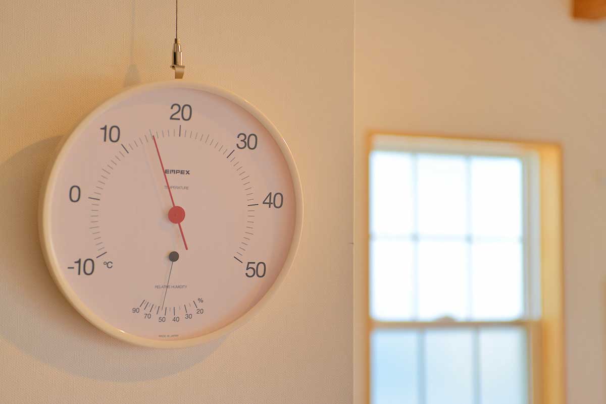 写植室は普段は居住しておらず空調は掛けていないのでかなり寒くなる。その為廊下から写植室へ入らずに温度と湿度を確かめたく、直径30cm以上の大型で精度が高い温湿計を探した。