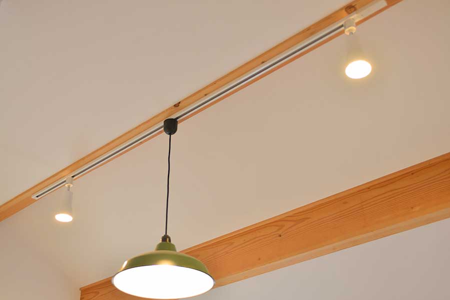 写植室は100Wの白熱電球1燈だけではやや薄暗かったので、ダクトレールを活用してヤザワのセード付きスポットライトを装着、60W相当のLED2燈を補った。見違える程明るく色鮮やかになり、写植室が活気づいたと思った。自宅の設計時、無理を言って高い位置にダクトレールを設けてもらった当時の自分の見通しは間違っていなかった。