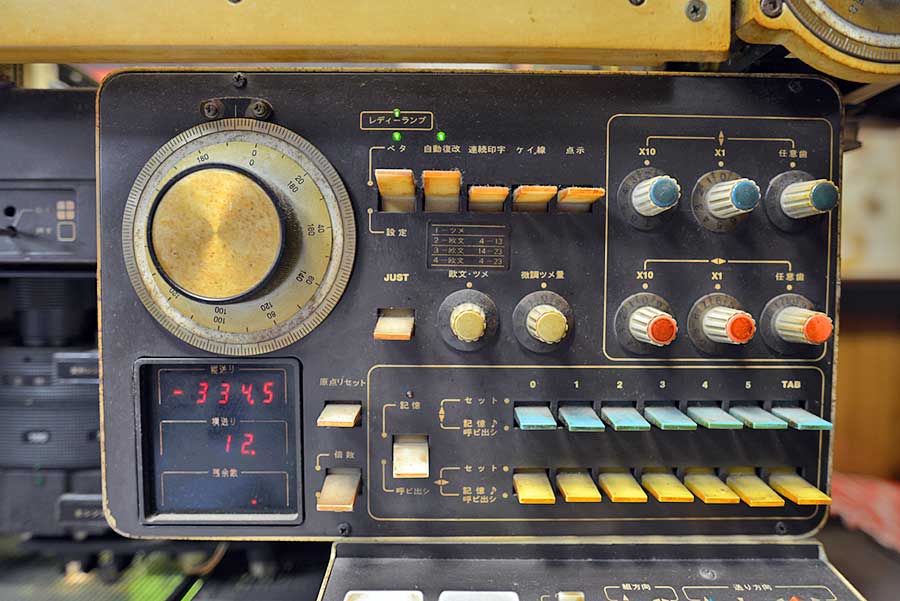 本体右側は操作パネルになっていて、文字組などに必要なスイッチやダイヤルが配置されている。数値は全てダイヤルで設定する。