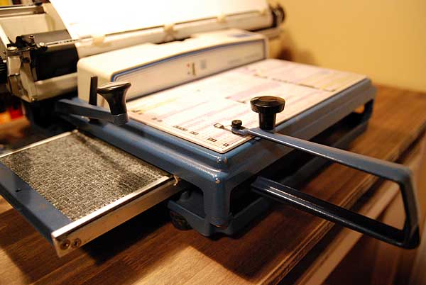 本機は電源を必要としない完全な機械式で、打ちたい時に打ちたい位置へすぐ打てるという大きな長所があります。保守も油を注すなど物理的な対処法で可能なため、無理な使い方をしなければ今後も長く使用できると思います。 |