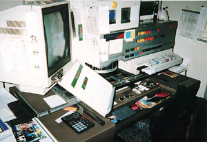 先輩が、「パッキー、これが手動(の写植機)なんだよね? 今作ってない(手動写植機の製造は終了している事を教えた)んだったら、今から買おうと思うと中古しかないんだよね。手動じゃない写植ってあるの?」と。「電算写植っていうコンピュータの写植機があるんだけど、それはフォント(コンピュータで使う書体)を使うもんであまり好きやないんやて。仕事するようになったら1台手動を入れたいんだけど……。」と答える。すると社長が、「この前2台処分したんだけど、300kg位あるから10万円かかっちゃって…言ってくれれば良かったのにね。」とおっしゃる。とても残念だ!「下宿には置けないよねー。」と先輩。でも実家のプレハブ小屋を綺麗にすれば置けたかも(無理か)…。