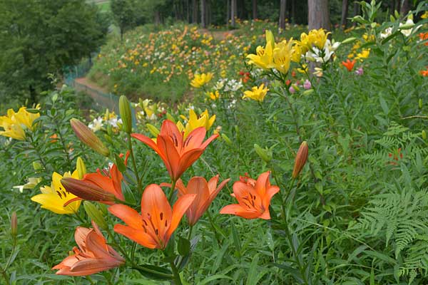 檜林の中に色とりどりの百合が整然と植えられていて、林のずっと奥まで明るく見渡せるのが心地良かった。