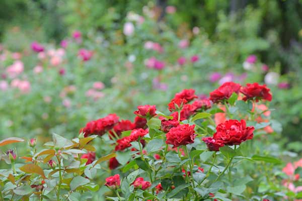 真夏でもバラが咲いていた。平日だからか人が少なく見放題。こういう場所が好きだ。