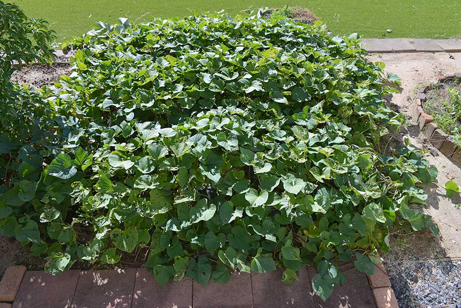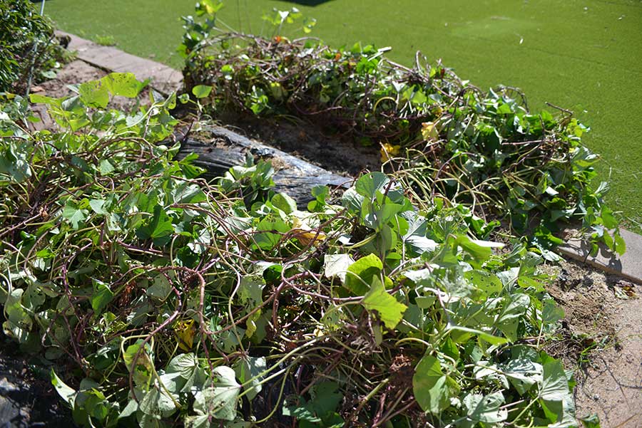 約半年で蔓は畑一杯に伸びた。以前はもっと伸び放題になったが、舗装や人工芝が充実したからか畑の範囲に収まってくれた。