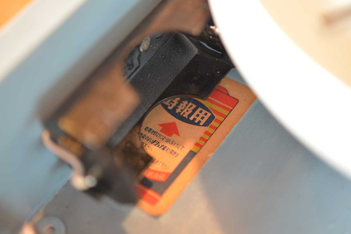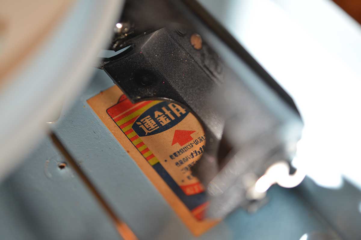 向かって右側の電池ボックスには、製造当初の「運針用」シールが綺麗な状態で残存していた。