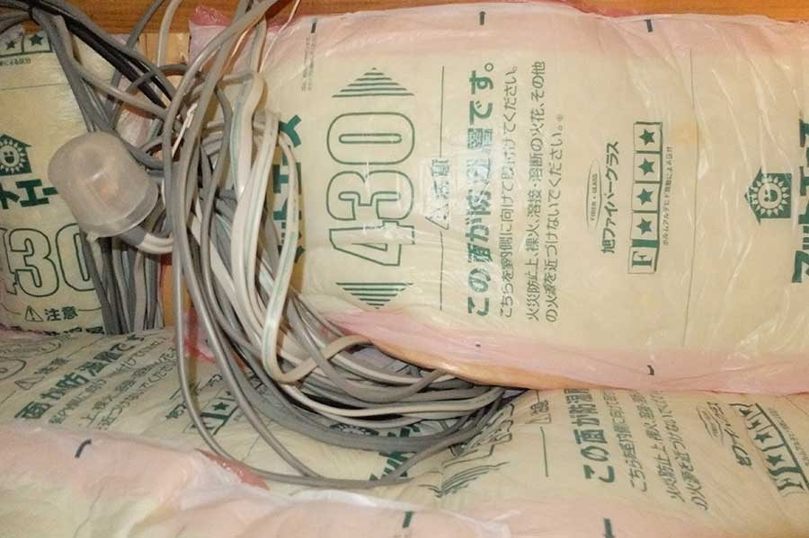 そして薄いグラスウールが申し訳程度に置かれているだけ。ブレーカー辺りから脱衣室側に隙間風が入っているのはこのせいだったのか。