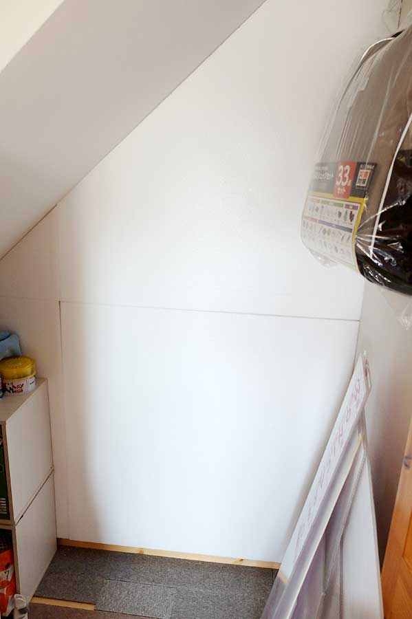 この階段下収納は写植室に接している。ついでに壁に発泡スチロールを張り、冷気が伝わって来ないようにした。ここも廊下の寒さの原因だったのだ(→2025.1.20の記事参照)。春になり暖かくなってしまったので効果測定はできなかったが、今年の冬に期待したい。