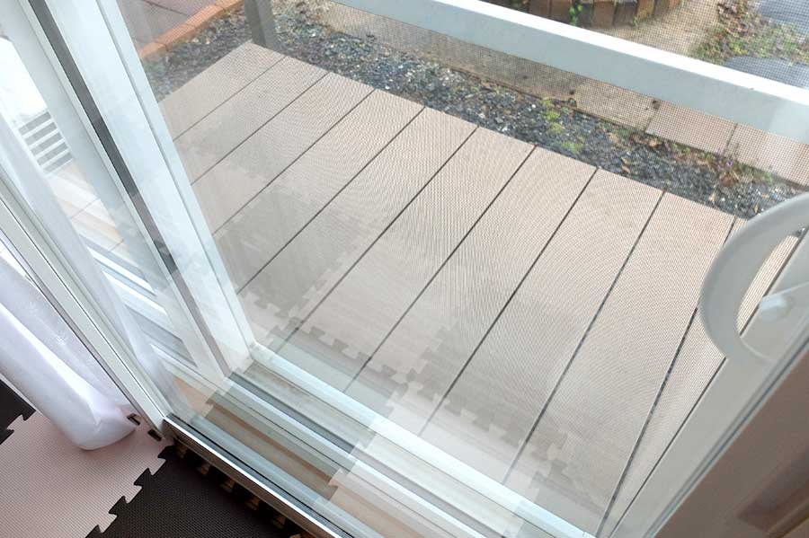 居間の掃き出しには新築時に設置し、デッキ(→カインズ 人工木アルミDXデッキ T型)を物干しの為のテラスとして使用している。最近洗濯物が増え、2階のベランダの物干しに干しているが、あまりの忙しさに2階に移動する時間が勿体ないので和室の掃き出し窓の先にも追加で設置した。