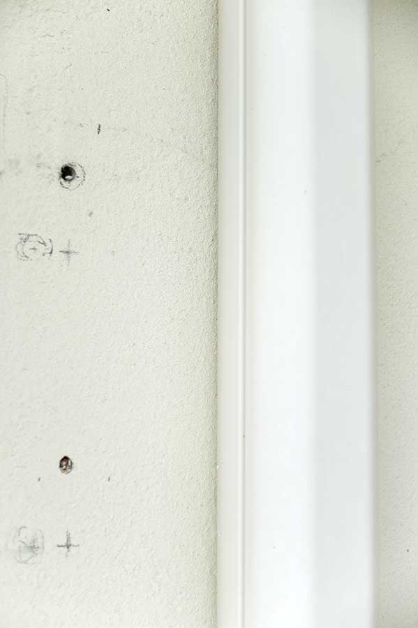 「ホスクリーン HK-55」を六角ねじで取り付け、ねじ穴部分と本体が壁に接する部分にコーキングを施した。