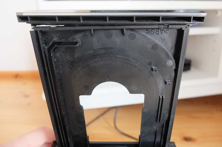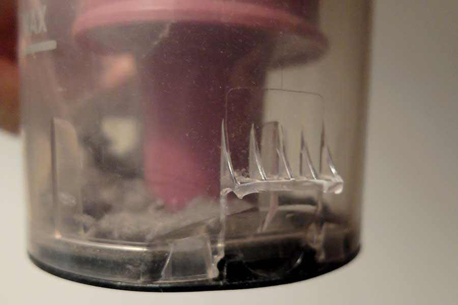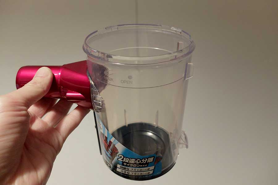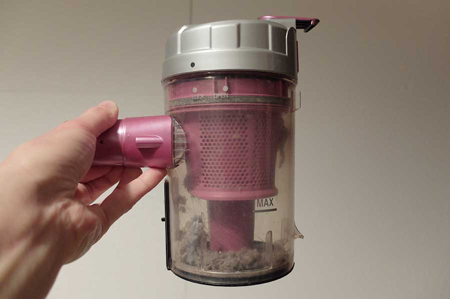 汚い写真で恐縮だが、本機はダストカップに重大な構造的欠陥があった。