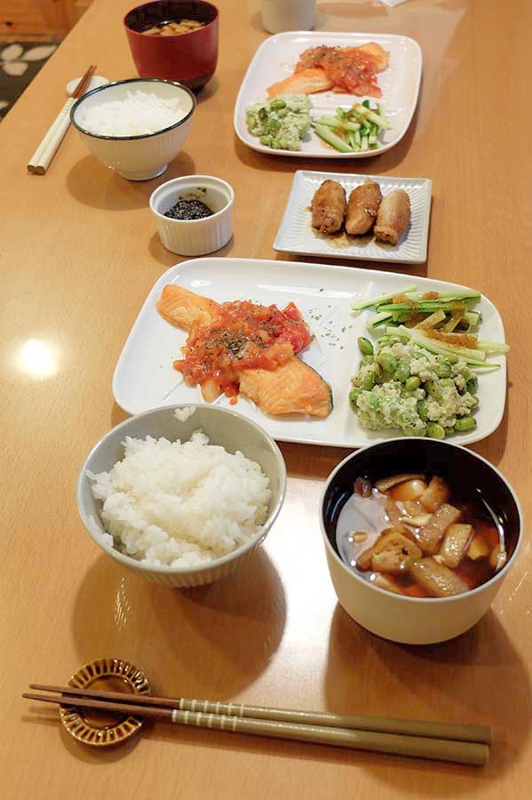 お椀(約400円)も角皿(唐茶削ぎ:生産地不明。約250円)もニトリ。シンプルで品質が良く、万一壊れても惜しくないところがいい。安心して毎日使える。因みに箸置きも美濃焼だ。こういったものが我が家の食卓を支えているのであった。