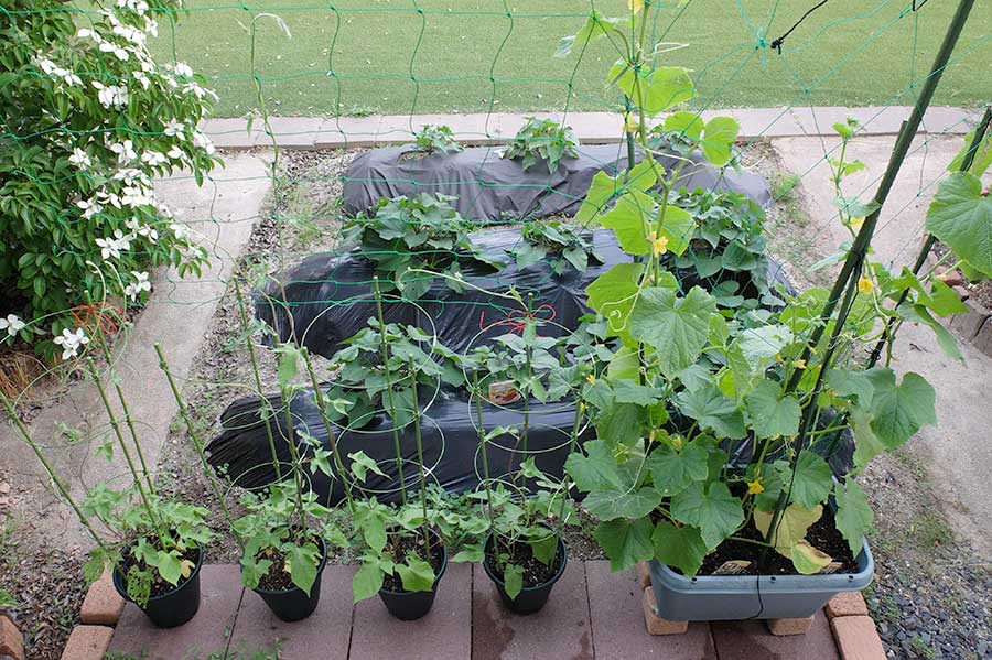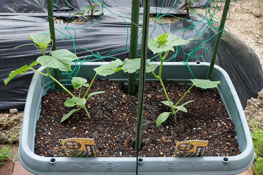 一方、庭ではきゅうりが旺盛に蔓を伸ばしていた。