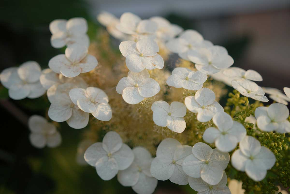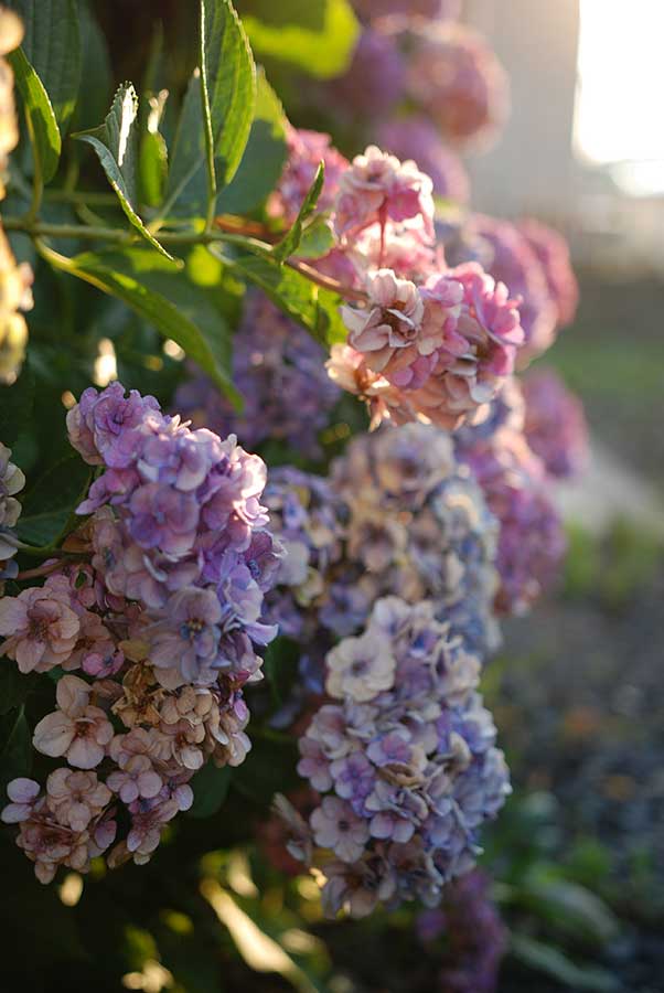昨年植えた柏葉紫陽花も夕陽が当たり、独特で繊細な表情を見せてくれた。