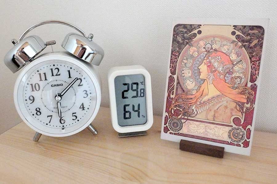 2階の自室はエアコンなしで29.8℃。部屋には居られるが快適ではない。とはいえ二重窓と天井裏の断熱材を設置したことが効いているのか、以前のようなじりじり来る輻射熱は感じない。
