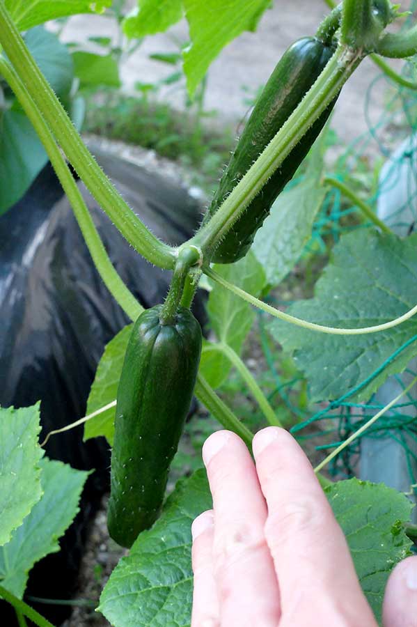 手よりも長いきゅうりが2本!