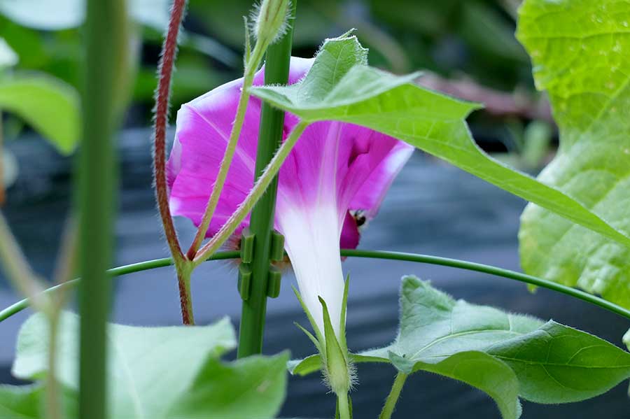 【日録】庭の朝顔が初めて花を着けた。