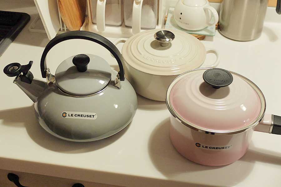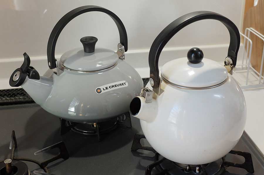 特にル・クルーゼに拘りがあった訳ではないが、店頭でその意匠の良さと頑丈さ、熱伝導の良さを知り、今後20年以上使うなら自分達の想定よりも上質な物にしたらどうかと提案した。 そして新しい笛吹き薬罐が我が家の一員となった。