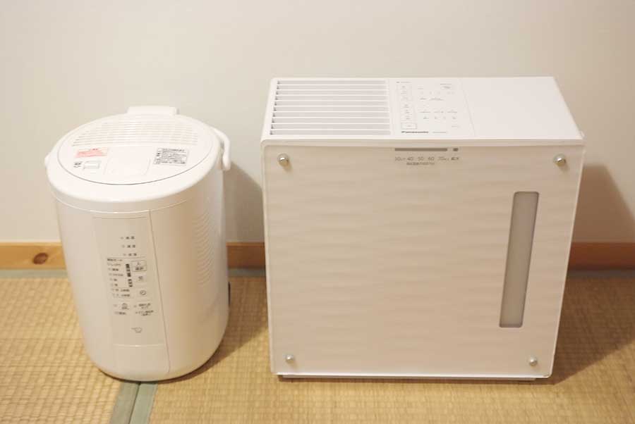 新品の加湿器が2台並ぶの図。
