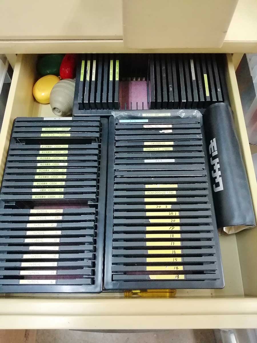 ・文字盤はあります(明朝・ゴシック・筆書体・ゴナ・ナール等。メインプレート40枚程度、サブプレート300枚程度)。現所有者は、文字盤は本体とともに引き取られることを希望されています(文字盤のみを希望される方は保留とさせていただきます)。